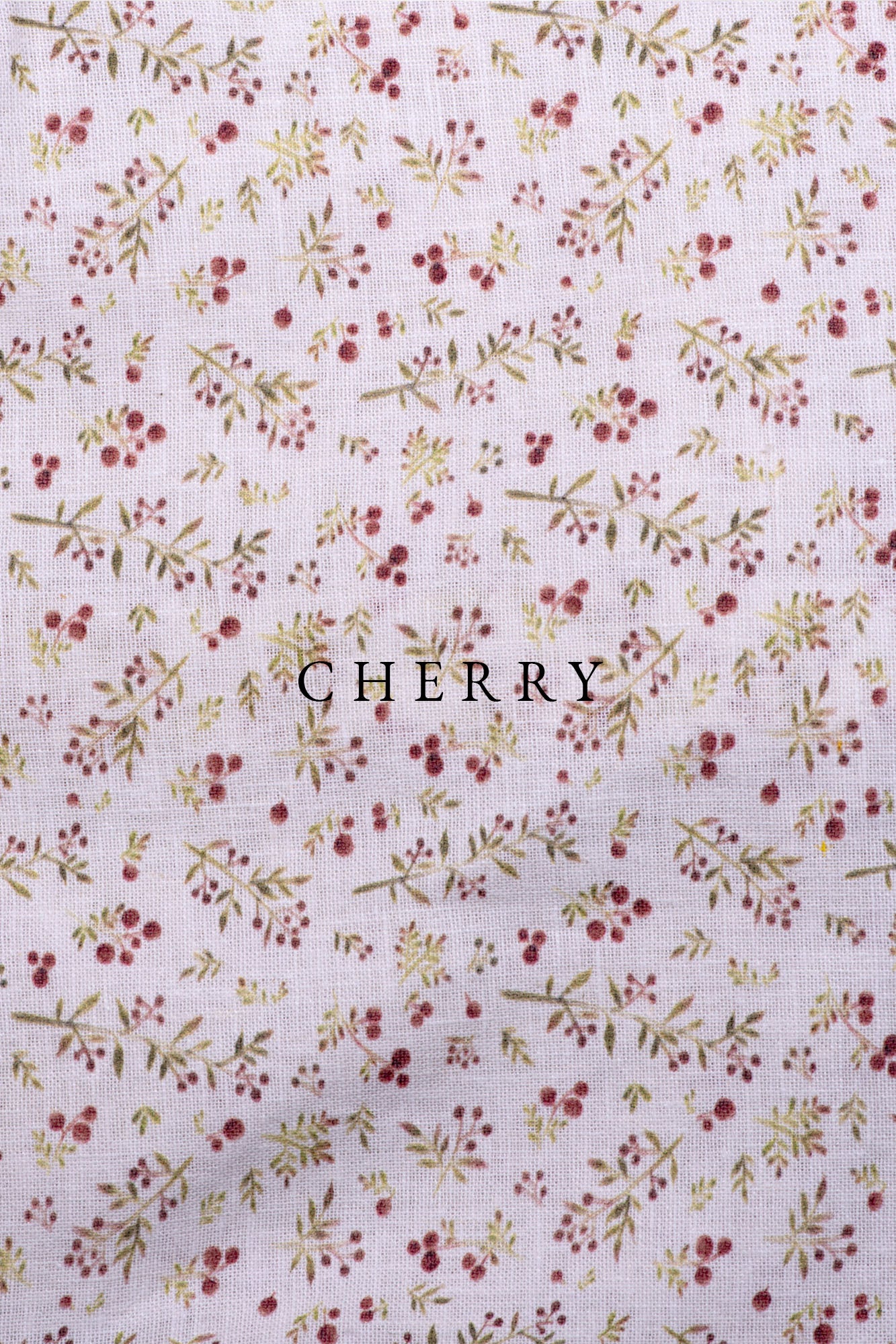 Cherry pattern is 60% cotton, 40% linen.